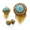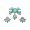 Lot 4 - A TURQUOISE AND SEED PEARL SILVER NECKLACE, BROOCH AND EARRING SUITE, EARLY 20TH CENTURY