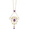 AN EDWARDIAN AMETHYST AND PEARL 15CT GOLD NECKLACE — With oval cut amethysts and pearls, integrated on to a belcher link chain, with a barrel clasp and safety chain, in 15ct gold measuring 41cm in len…