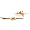 An Edwardian turquoise and pearl set plated bar brooch, length approx 40mm, together with a Whitby jet style muff style chain, comprising faceted beads, length approx 150cm Further details: chain coul…