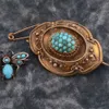 A late 19th century turquoise and pearl brooch/vinaigrette