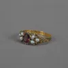 A rose metal seed pearl and stone set ring, size L, total weight 2.8g.