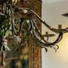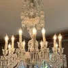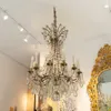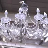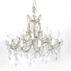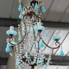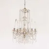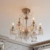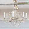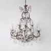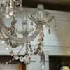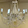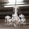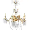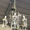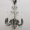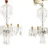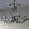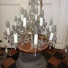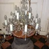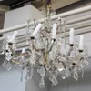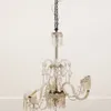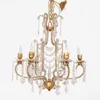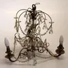 A mid 20th Century six branched ceiling candlelight with glass droplets