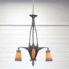 An Art Nouveau brass three branch chandelier with clear glass shades, approximately height 41cm.