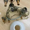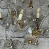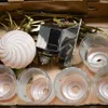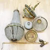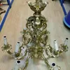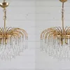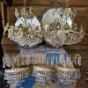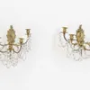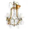 A collection of early to mid 20th Century light fittings with glass droplets, gilt powder coated, wear / faults