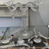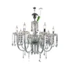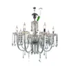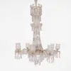 REGENCY STYLE GLASS AND SILVERED METAL EIGHT LIGHT GLASS CHANDELIER