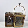Three decorative ceiling lights, two of which with stained glass box shaped, other gilt metal frame and clear glass.