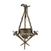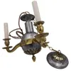 An 18th century style metal and brass three-branch chandelier, height 29cm, width 30cm.