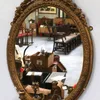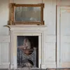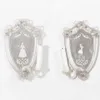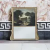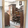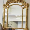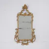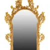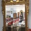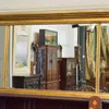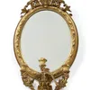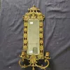 A 19th Century gilt metal wall mirror with candle holders along with an ornate glass and gilt metal tall table lamp.