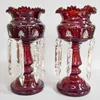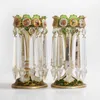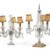 A PAIR OF GLASS TWIN LIGHT TABLE LUSTRES, LATE 19TH CENTURY