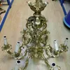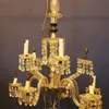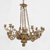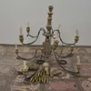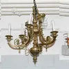 Mid 20th C solid brass nine branch ceiling candle chandelier mid 19th C style 100cm drop.