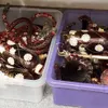 An early to mid 20th century mixed glass "End of Day" hanging light, various colourways, with hanging metal fitting. (some pieces of glass detached and in bag)