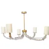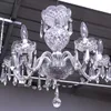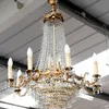 1 x 12 light 20c Chandeliers may be one or two missing drops. A moulded glass eight branch/twelve light electrolier, late 20th century in Regency style, with C-scroll branches conjoined by beaded swa
