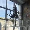 A PAIR OF OCTAGONAL GLASS HANGING LANTERNS (2) — Modern With curved glass panels set within a metal frame with pierced fretwork, approx 74cm high