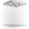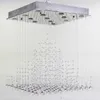 A CRYSTAL GLASS AND POLISHED METAL CHANDELIER OF PYRAMIDAL FORM — Modern The square frame fitted with thirteen spot lights illuminating tapering rows of crystal drops each terminating in a large cut g…