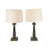 A PAIR OF CORINTHIAN COLUMN TABLE LAMPS (2) — Modern The gilt-brass corinthian columns, on marble mounted square bases, with pleated cream shades, bases 21cm wide, 91cm high including shades