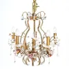 ITALIAN GILT-TOLE AND GLASS MOUNTED ‘TUTTI FRUITI’ SIX LIGHT CHANDELIER
