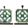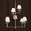 PORTA ROMANA: A GILT-METAL AND GLASS ‘ROUND LARTIGUE’ SIX LIGIHT CHANDELIER — Modern The arms mounted with cubed glass, with cylindrical shades, 62cm high; 118cm wide overall