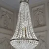 CRYSTAL GLASS AND POLISHED METAL CHANDELIER OF PYRAMIDAL FORM