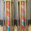 near pair of telescopic brass column floor lamps