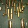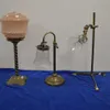 A collection of various brass 19th cent lamps some with shades