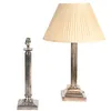 - A pair of large silver plated Corinthian column table lamps, 20th Century