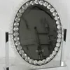 A contemporary chrome and cut crystal illuminated dressing table mirror. 52cm x 46cm. Untested, no cable.