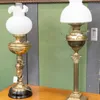 pair of brass writers draft hurricane lamps
