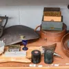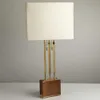 brass and wood table lamp