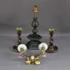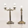 pair of brass and imitation marble candlestick lamps