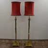 A pair of contemporary tall brass table lamps with matching shades. untested