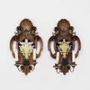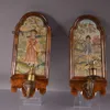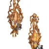 pair of carved and painted wood wall lights