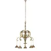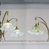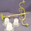 A set of brass effect light fittings and glass shades by David Hunt to include two three branch
