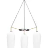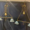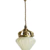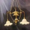 3 x Brass ceiling lights with frosted glass inserts and ceiling hangers.