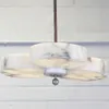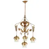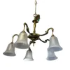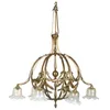 An Art Nouveau brass five branch chandelier the branches in the form of swan necks with frosted