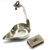 An Edwardian Arts & Crafts planished silver novelty hanging oil lamp / bowl, of tear form with attachment to top of long handle, hallmarked by Nathan & Hayes, Chester, 1905, approx. 13.5cm high, along…