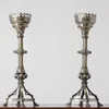 pair of Victorian Arts and Crafts brass altar candlesticks