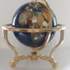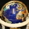 A Large remarkable quality fine weighted 40 " circumference table top rotating stand globe, on brass ball and claw feet with added compass and crafted from semi precious gemstones by exaggerating nati…