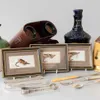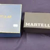 A boxed Martell limited edition glass decanter together with cased pair of binoculars.
