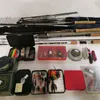 A collection of vintage fly fishing equipment to include; flys, spinners, pocket knives, 2 centre pin reels by J W Young & Sons, various rods by makers such as Shimano, Tjostheim etc. (qty)
