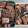 A box of cased binoculars