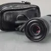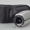 Olympus cased automatic camera on tripod stand, along with video camera and flash