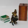 An early 20th Century brass antique microscope with accessories.