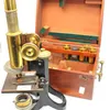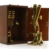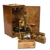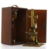 cased Victorian brass microscope