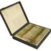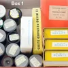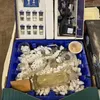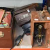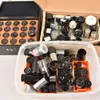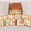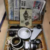A box of microscope accessories including slides and lenses.