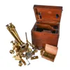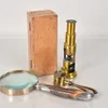 Vintage Brass Drum Microscope and Telescope set