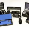 Two microscopes: a cased Olympus KHC and a Vickers.