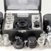 Two cases of brass and other microscope lenses and accessories.