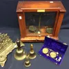 Vintage River Chemical Company Ltd of Nottingham cased laboratory scales along with mid 20th Century cased pocket scales, three graduated hand bells, Victorian ink stand and letter rack.