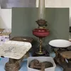 Contents of a fishing tackle shop closed down for about 40 years; a set of Avery kitchen scales and weights together with a stainless steel twin-handled cooking pot and lid