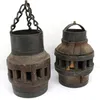 Two 18th century solid oak and cast-iron ship's candle lamps